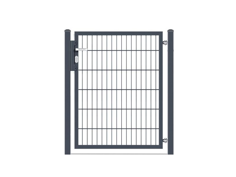 Flügeltor Vario Basic, einflügeliges Eingangstor mit Doppelstabmattenfüllung. Der Torflügel ist von einem umlaufenden 40/40 mm Rahmen umfasst und bietet eine robuste und langlebige Konstruktion. Die Torpfosten bestehen aus 60/60 mm Profilen und sorgen für eine hohe Stabilität der gesamten Toranlage.