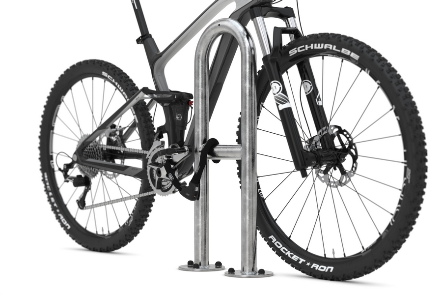 Ob in Grünanlagen, an Park- und Verkehrsflächen, zum Schutz von Bäumen oder zur Absicherung von Eingängen und Garagen – der Anlehnbügel sorgt überall für Ordnung und sicheren Fahrradschutz. Das integrierte Knierohr erleichtert das Anschließen von Fahrrädern und erhöht den Diebstahlschutz.