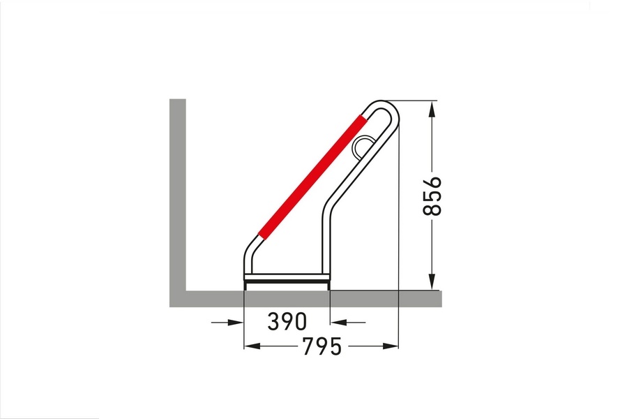 Der Radabstand beträgt 500 mm, bei zweiseitiger Nutzung 540 mm, wodurch ein komfortables und geordnetes Abstellen gewährleistet wird. Zur Erhöhung des Diebstahlschutzes ist der Anlehnparker mit integrierten Stahl-Rundösen zur sicheren Fixierung der Fahrräder ausgestattet.