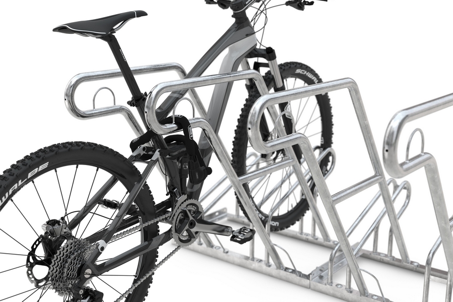 Das Fahrradparksystem überzeugt durch ergonomisch angeordnete, hüfthohe Anlehnbügel, die ein besonders komfortables und sicheres Abstellen ermöglichen. Auch hochwertige Fahrräder wie E-Bikes und Pedelecs lassen sich bequem und ohne Bücken positionieren.