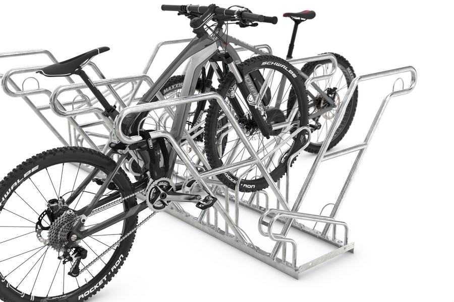 Dank der versetzten Hoch-/Tiefstellung wird der vorhandene Raum optimal genutzt und die Stellplätze bleiben gut zugänglich. Das Fahrradparksystem ist für die feste Bodenmontage sowie für die Reihenverbindung vorbereitet. Bei den XBF-Varianten sind die passenden Bodenmontagewinkel bereits im Lieferumfang enthalten.