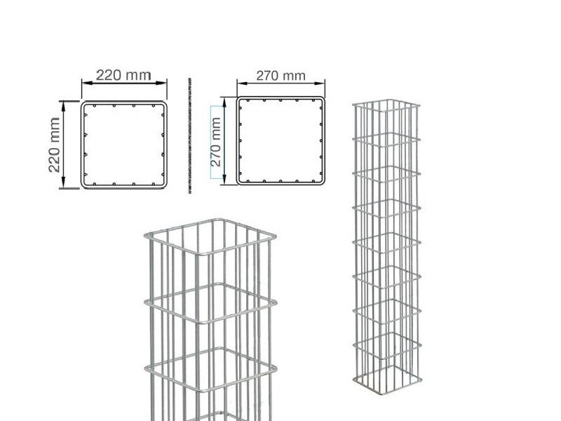 Die Gabionensäule RUBIN Q ist eine moderne, langlebige Lösung für dekorative und funktionale Gartengestaltung. Sie ist in Breiten von 220 mm oder 270 mm und in Höhen von 1000–2000 mm erhältlich. Die Maschenweite beträgt 50 × 200 mm.
