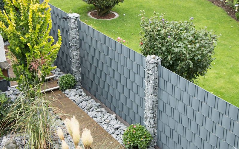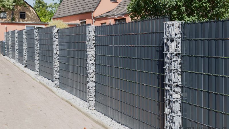 Die Gabionensäulen lassen sich flexibel mit Steinfüllungen und Zaunelementen kombinieren für individuelle Gestaltung ohne Grenzen.
