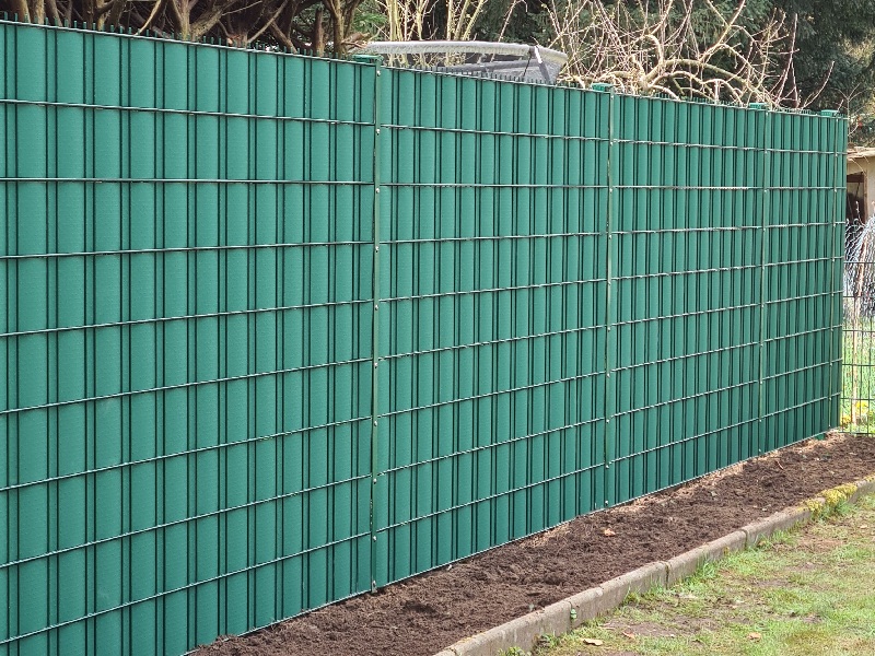 Das Material besteht aus Polypropylen (PP) und wird in 26-Meter-Rollen mit 190 mm Höhe geliefert, passend für die meisten Doppelstabmattenzäune mit ca. 200 mm Maschenhöhe.